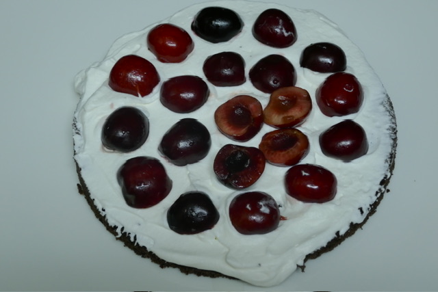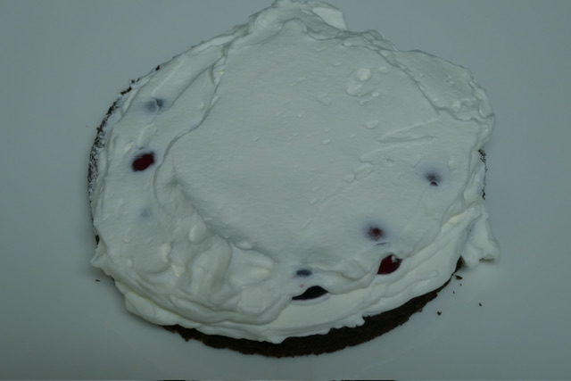 1. Y déposer des cerises, puis recouvrir avec plus de chantilly. Étaler avec une spatule afin que tout soit égalisé.