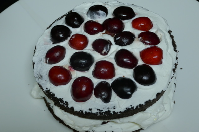 Il y a des moments où les besoins du Tour et les désirs de La Fille se joignent les uns aux autres. En décembre, après avoir joué le jeu vidéo Portal, elle m’a demandé de faire le gâteau du jeu, une forêt-noire. Je lui ai répondu que je serais heureux de le faire, mais seulement quand deux choses arriveraient : 1) le retour des cerises dans mon supermarché, et 2) l’arrivée du Tour en Alsace. Nous voilà, donc voici mon dessert haut-rhinois, le gâteau forêt-noire.