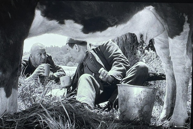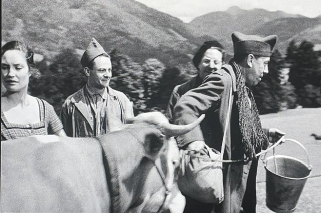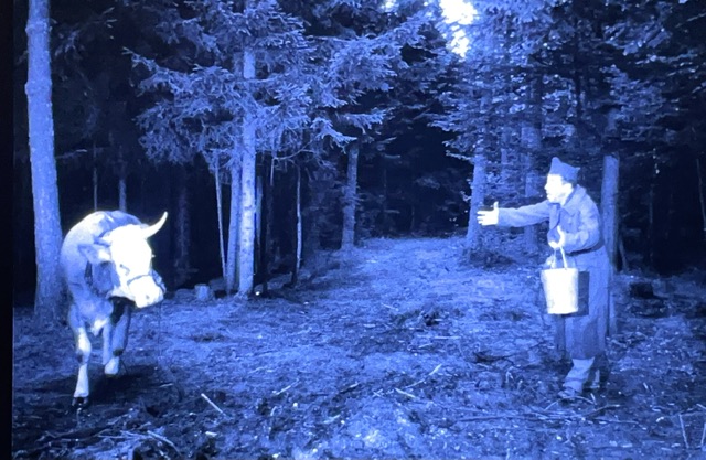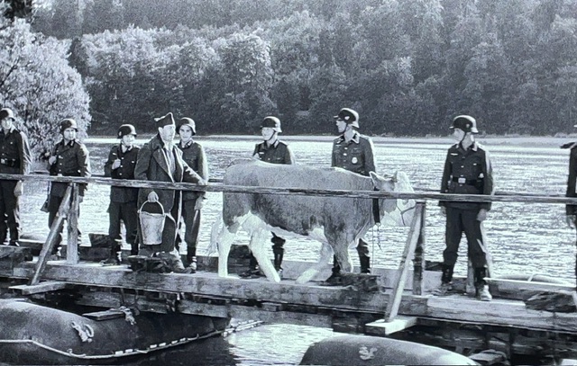 Charles Bailly, joué par Fernandel, a une idée de bête. Littéralement. Il va essayer de s’échapper avec une vache. Il restera habillé en tant que « KG » (Kriegsgefangener, ou prisonnier de guerre), et pense qu’avoir une vache avec veut dire que tout le monde le foutra la paix. J’ai assez bien compris la langue. C’est l’idée que je trouve trop stupide pour la croire.