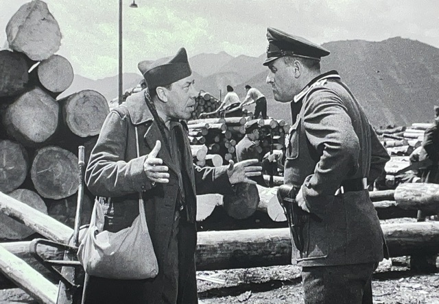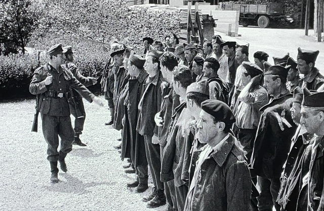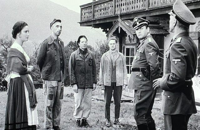 Il entend des sifflets sur la route, et plutôt que de les évader, il les suit et est rattrapé par les fridolins. Ne vous plaignez pas de moi, j’ai appris le mot du film. Après un moment bizarre où les allemands s’inquiètent d’avoir trop de prisonniers, Bailly explique au commandant qu’il appartient à une ferme — et le monsieur le permet de s’en aller. Les allemands étaient légendaires pour croire tout simplement les paroles de prisonniers et ne jamais les tuer sous la moindre excuse.