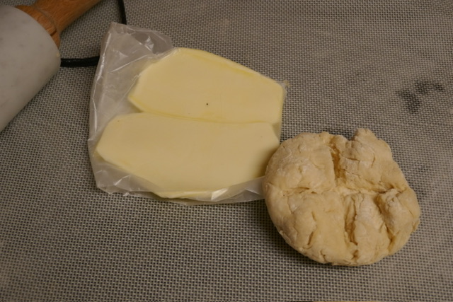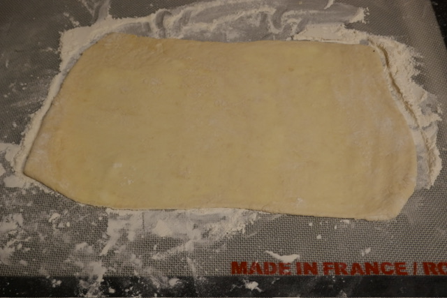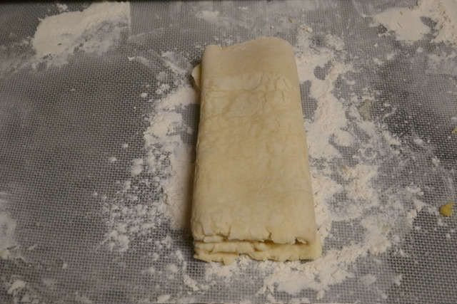 - Fabriquer de la pâte feuilletée si besoin. Voici des preuves que je l’ai fait, en coupant ma recette habituelle au lien par deux.