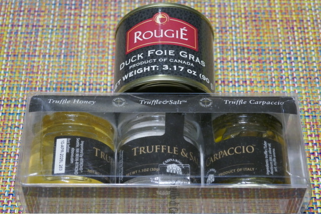 La soupe VGE, pour Valéry Giscard d’Estaing, a été créée par Paul Bocuse à l’occasion d’être décoré Chevalier de la Légion d’honneur. C’est donc une soupe couteuse, avec du foie gras, des truffes noires, du vermouth, et du paleron, tout ça sous un auvent de pâte feuilletée — et dois-je vous rappeler que je dois la fabriquer à la main à chaque fois ? Juste le foie gras et les truffes m’ont coûté 60 $, et ça pour 90 grammes de foie gras et 30 grammes de truffes. J’allais payer 25 $ pour des truffes soit tout seul soit dans cette boîte avec du miel et du sel aux truffes, alors j’ai choisi la deuxième option.