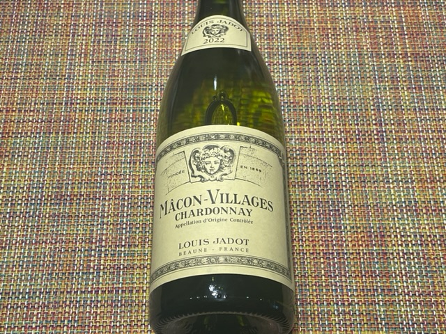Voici ma bouteille de vin. Étant de Louis Jadot, on ne connaît pas le producteur, mais on peut faire confiance que c’est le bon vin. À 15 $ la bouteille, c’était un excellent rapport qualité prix, et j’étais heureux de boire un verre avec le plat principal. Il me semble que ça coûte à une vache charolaise près le même chez moi qu’en France (15 $/13 €). Attention, Louis Jadot vend plusieurs bouteilles Mâcon-Villages — c’est n’est pas la plus chère « Grange-Magnien ».