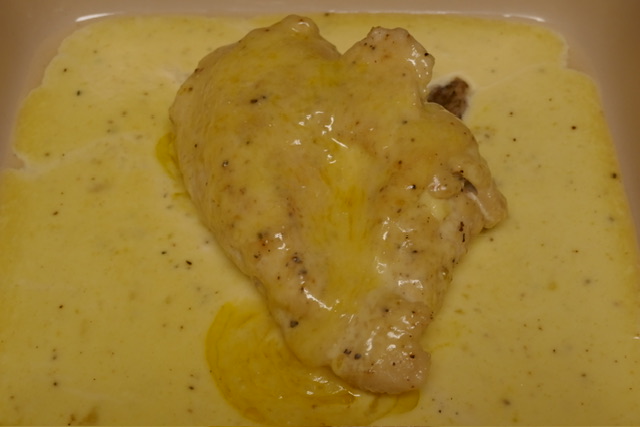 J’ai trouvé la recette du poulet à la comtoise chez Cuisine AZ. J’ai utilisé juste une suprême de volaille pour moi-même, mais pour avoir assez de sauce, j’ai coupé cette partie de la recette seulement par deux. Je ne recommanderais pas la couper par 4.