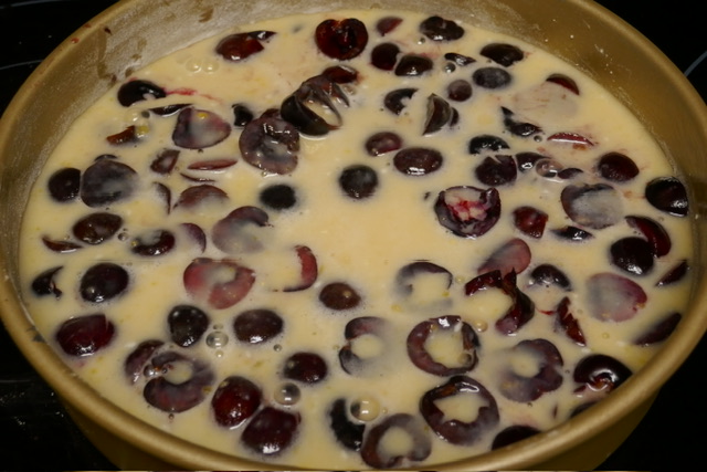 1. Verser la pâte au-dessus des cerises. Enfourner pendant 45 minutes.