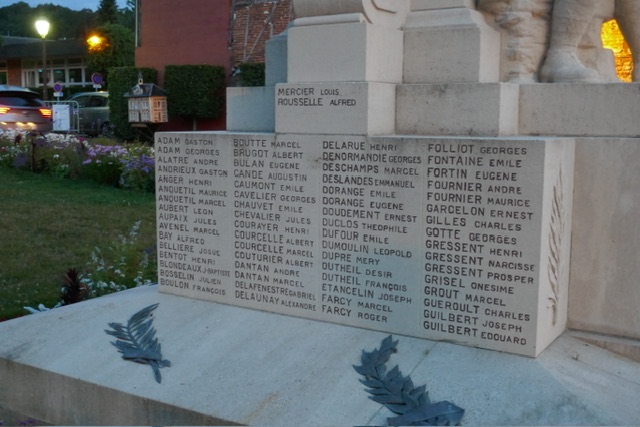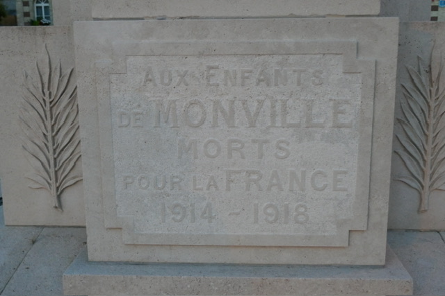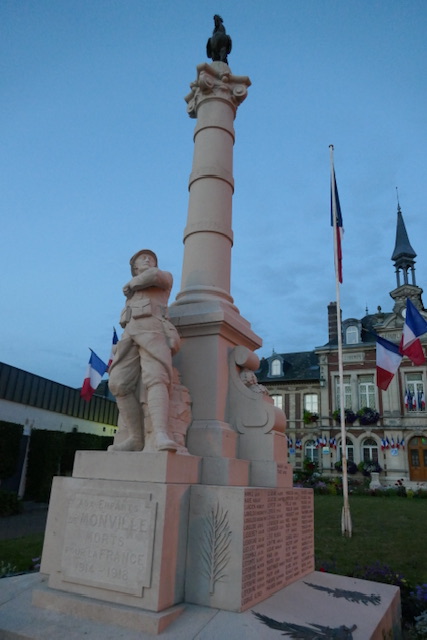 Après, nous sommes passés par la mairie de sa ville aux alentours de Rouen. Là on trouve un monument aux Morts pour la France de la Première Guerre mondiale :