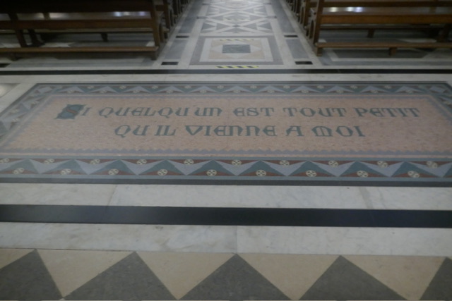 Sur le sol, on trouve les mots de Jésus-Christ, qui rappellent les croyants à le suivre :