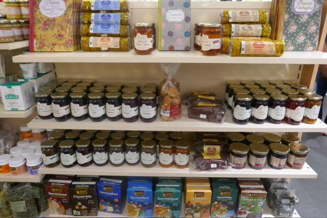 Dans la boutique, on trouve la sélection habituelle d’objets religieux. Mais aussi des produits locaux :