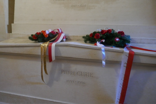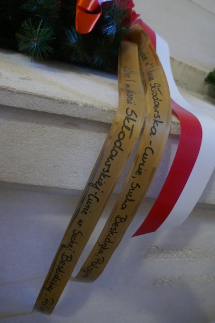 Sur les sarcophages des Curie, il y avait des fleurs laissées par une association polonaise. Peut-être que certains d’entre vous peuvent lire les inscriptions :