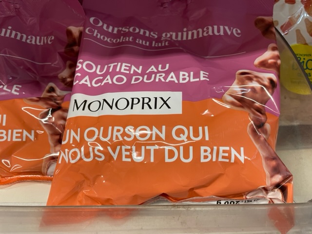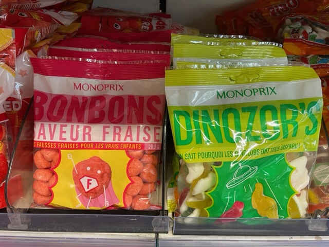 Les fausses fraises Tagada m’ont aussi fait rire. « Les fausses fraises pour les vrais enfants. » J’ai presque acheté le sac juste pour ça, mais la photo devra suffire.