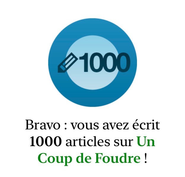 C’est le 1000e post d’Un Coup de Foudre. Lancé le 1 novembre 2020, c’est à dire que pour les 1005 derniers jours, dont les derniers 399 de suite, je suis ici pour vous parler quotidiennement de mon sujet préféré au monde entier.