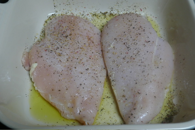 1. Préchauffer le four à 190°C. Mettre de l’huile d’olive dans un plat rectangulaire. Badigeonner les deux côtés des suprêmes avec de l’huile. Saler et poivrer généreusement chaque côté.