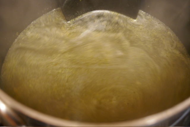1. Ajouter environ 100 ml de bouillon, faire bouillir, puis ajouter la crème. Saler et poivrer, puis faire bouillir à nouveau. Puis baisser le feu pour garder le tout au chaud sans bouillir jusqu’au moment du montage.
