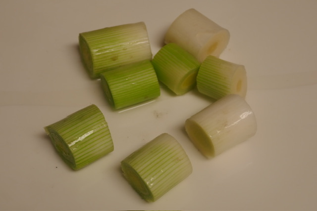 1. Laver et couper les blancs de poireau en cylindres. Faire fondre environ 20 grammes de beurre dans une autre poêle puis ajouter environ 50 ml de bouillon et du sel. Couvrir avec une feuille d’aluminium, et réduire à sec. Les poireaux sont prêts une fois les bouts qui touchent la poêle sont caramélisés.