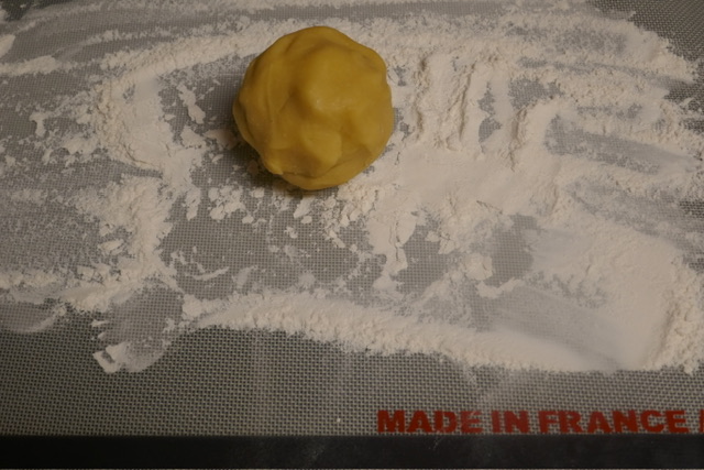 1. Former une boulé, couvrir avec du film à contact, et mettre la pâte au frigo pendant une demi-heure.