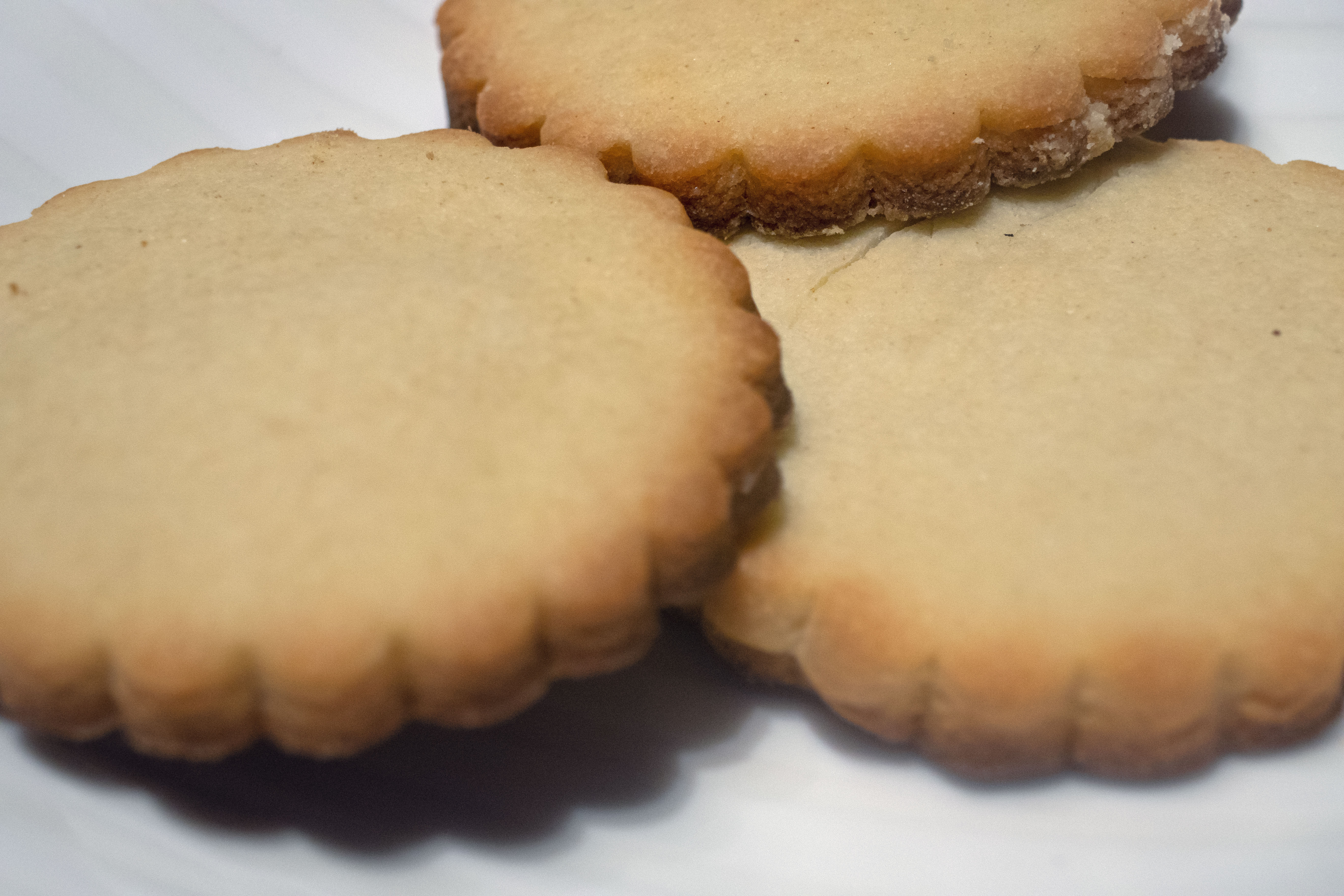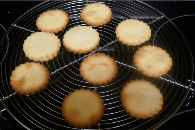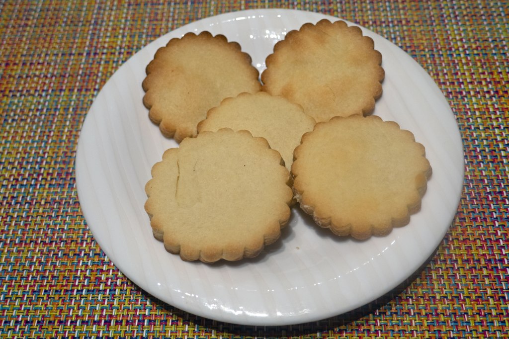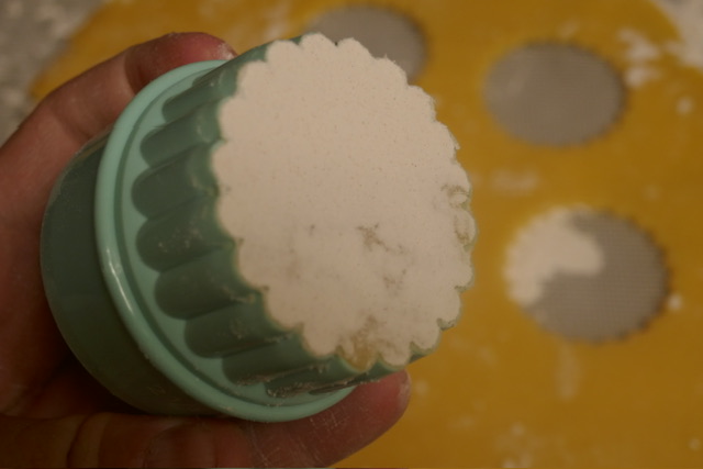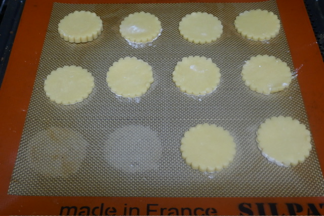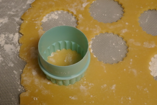 1. Avec un emporte-pièce de 58 mm, j’ai fait 20 sablés. (J’ai dû étaler la pâte 3 fois pour ça.)
