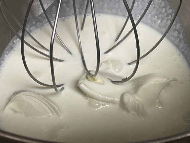 - Fouetter le tout jusqu’à ce que le mélange double de volume.