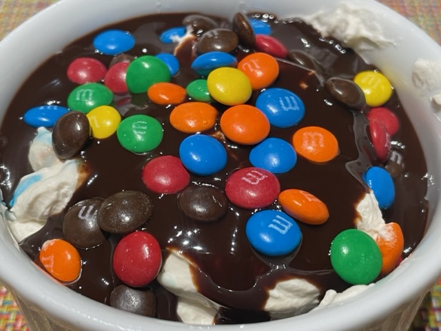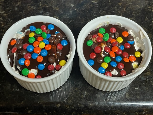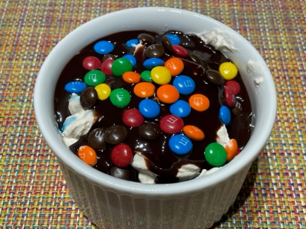 - Pendant ce temps-là, verser de la sauce chocolat et saupoudrer avec plus de M&Ms minis. Je vous promets, il n’y aura pas de plaintes.