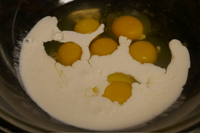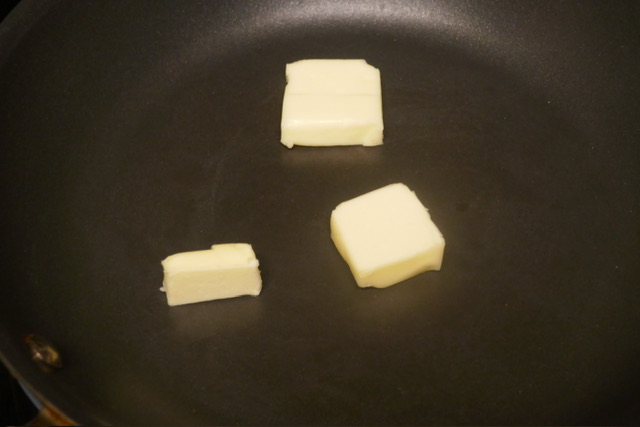 - Faire fondre le reste du beurre dans la même poêle et y verser le mélange. Baisser le feu à très doux et laisser faire cuire jusqu’à ce que le centre arrête de bouger. Il m’a fallu 25 minutes.