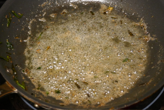 - Baisser le feu jusqu’à moyen. Saler, poivrer et laisser cuire pendant 8 minutes en remuant régulièrement. (La recette originale dit 15, mais on utilise la moitié d’ingrédients.)