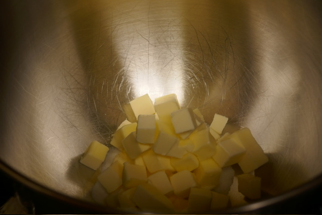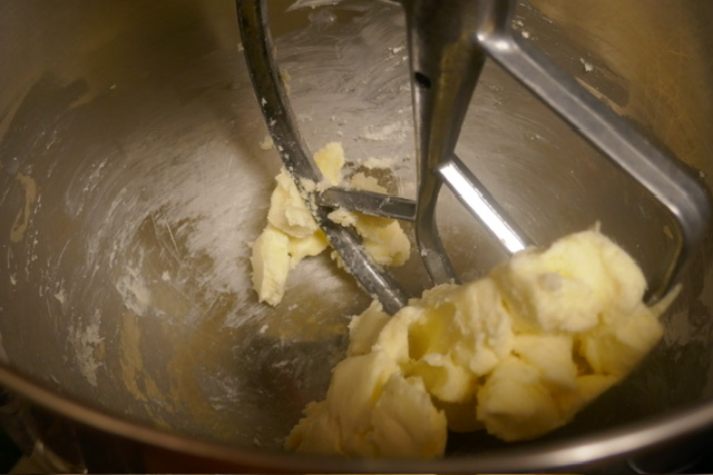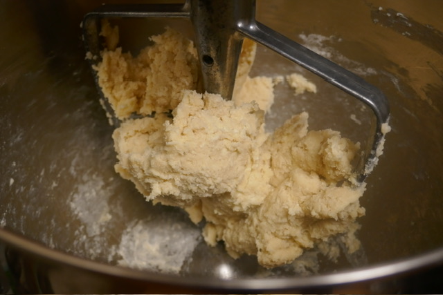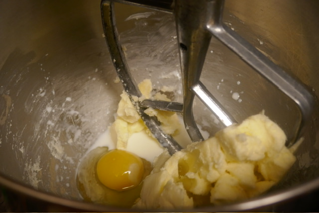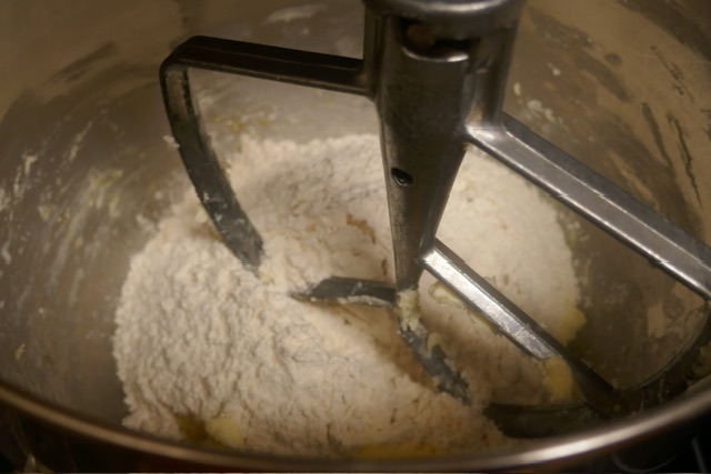 - Ajouter la farine en une fois et battre à petite vitesse jusqu’à ce que la pâte s’incorpore. Couvrir avec du film à contact et laisser reposer au moins 2 heures au frigo.