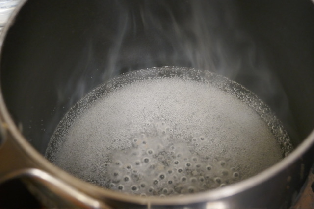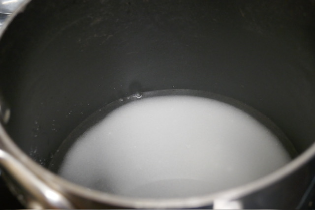 - Dans une casserole, faire un sirop avec 50 grammes de sucre en poudre et 100 ml d’eau. Faire bouillir puis éteindre le feu jusqu’à la 7e étape.