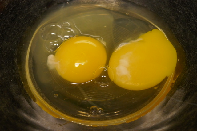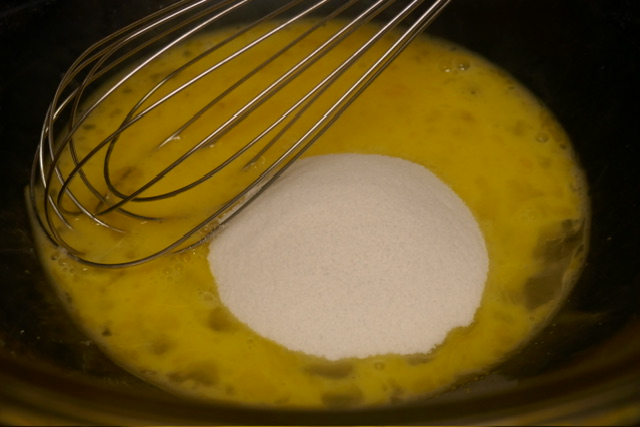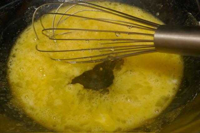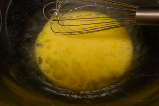 - Mettre 4 œufs dans un gros saladier, et fouetter légèrement.