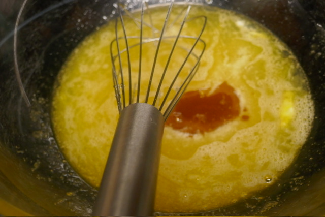 - Ajouter le reste des ingrédients : le sucre, sel, le sirop de glucose, le beurre fondu, et la vanille liquide. Mélanger après chacun.