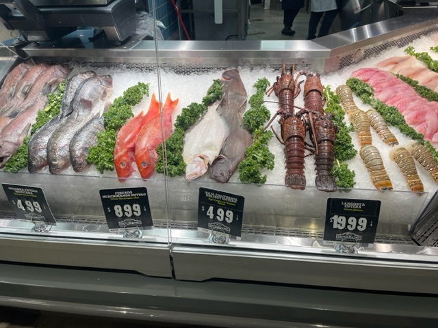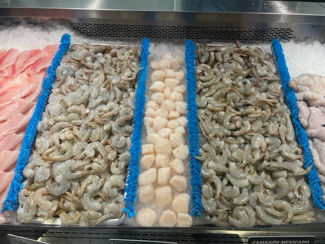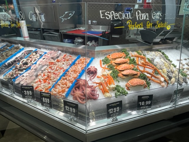 On ne trouvera jamais cette sélection de poissons et coquillages chez Ralphs ou Albertson’s. Remarquez les Saint-Jacques ; c’est comme ça partout :