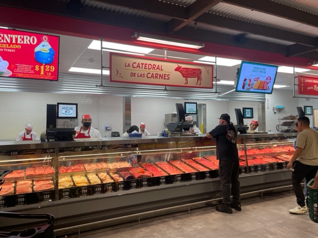 Je vous parle parfois du patrimoine mexicain du Sud-Ouest des États-Unis. Pourtant il est rarement le cas que j’ai des raisons pour vous montrer des exemples. Les vrais trésors de cette partie de l’histoire californienne sont loin de chez moi, à Los Angeles ou à San Diego. ([Avec « trésors, il exagère — il ne donnerait plus qu’une étoile Michelin à rien ici, lui. — M. Descarottes]) Cependant, j’ai enfin quelque chose de nouveau qui vous donnera le goût de la vie à la mexicaine. C’est Mercado (Marché) Gonzalez, qui vient d’ouvrir ses portes il y a une semaine.