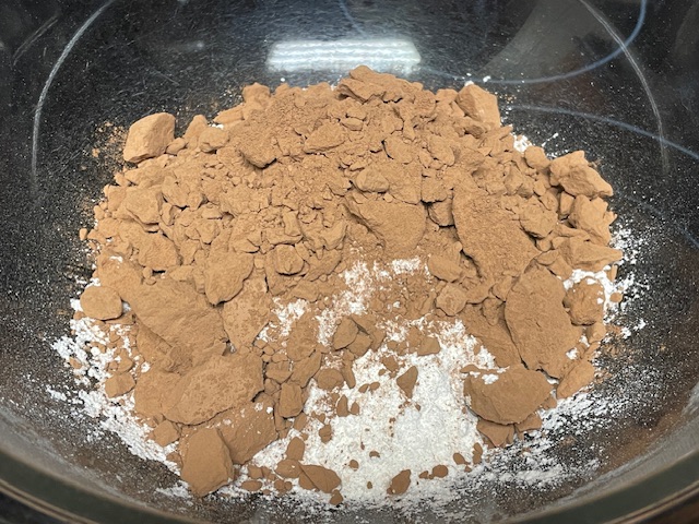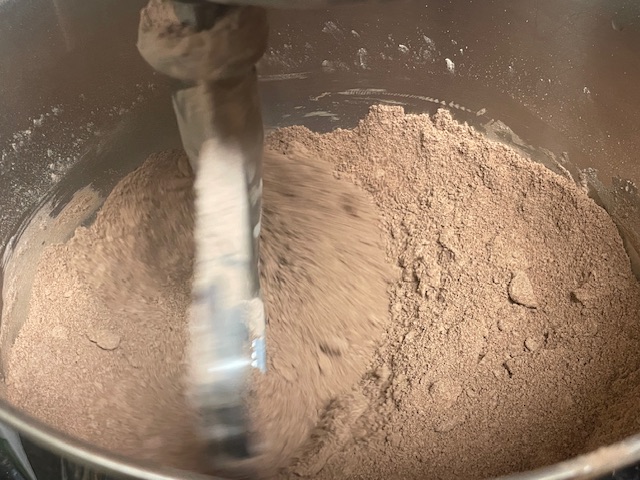 1. Mettre la farine, la poudre de cacao. le bicarbonate de soude et le sel dans un gros saladier. Fouetter afin de tout mélanger.