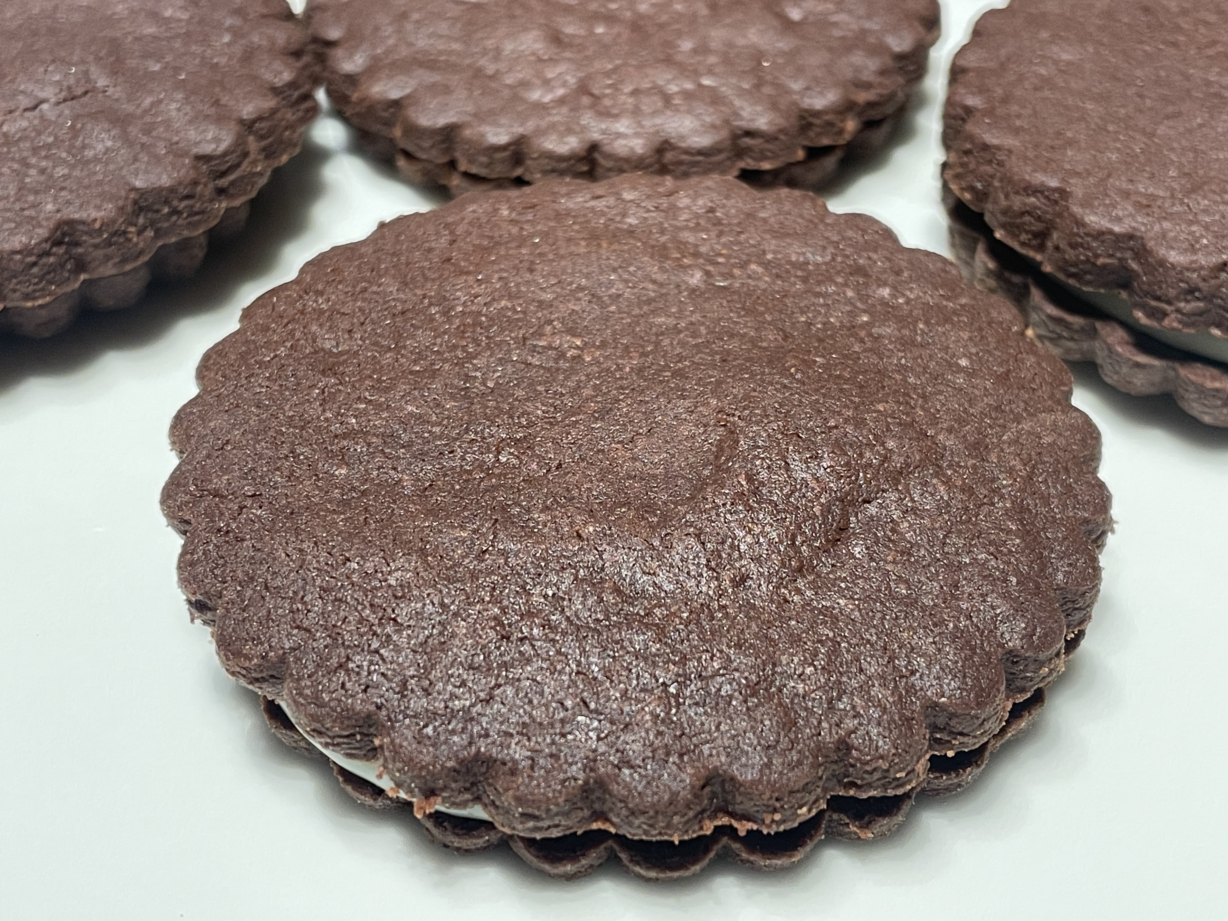 Voici une recette 100 % inattendue, suite à une demande 200 % inattendue. Je l’expliquerai, mais d’abord : Le plus grand chef américain est Thomas Keller, le seul d’avoir 2 restos 3 fois étoiles par Michelin en même temps (The French Laundry, Per Se). Parmi ses efforts pour nous les mortels est un resto dit Bouchon, et une boulangerie-pâtisserie qui va avec. Là, il fait sa propre version des cookies Oreo, et il les appelle « Thomas Keller Oreos », les TKO.