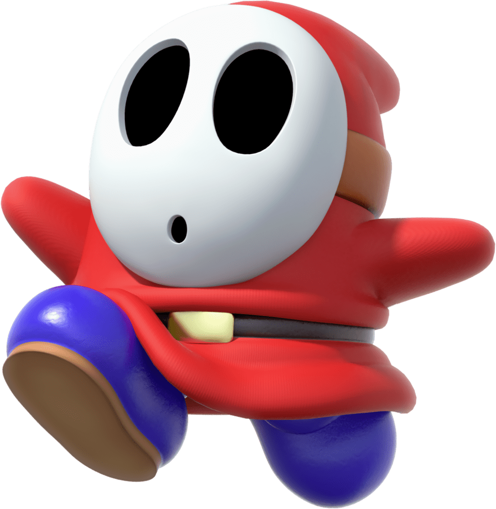 En anglais, ce méchant est connu sous le nom Shy Guy, Gars timide. Mask fait référence à sa masque, évidemment, mais « ass »… en anglais, ça ne signifie que « cul » et « âne ». En japonais, il s’appelle « Heiho », d’après les kanjis 歩兵, qui se prononcent « hohei » (les japonais ont leur propre version de verlan) et veulent dire « soldat qui marche ». J’ai lu une explication qui dit « fantassin » pour hohei, et je suppose que c’est d’où l’ass, mais aucun anglophone qui lit « Maskass » va le comprendre de cette façon. Il me dit quelque chose que cette explication ne vaut rien au Québec, vu qu’ils disent Maskache. Car trop de monde là-bas comprennent l’anglais, j’imagine.