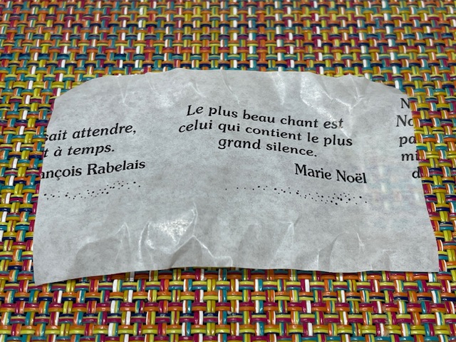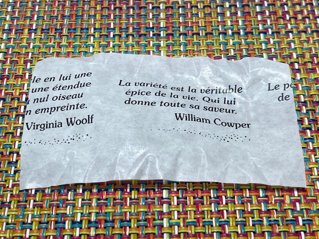 Avec les chocolats, on trouve de petits papiers avec des citations :