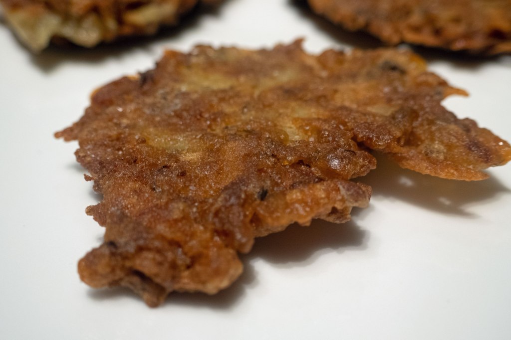 C’est toujours Hanoucca, et après avoir lu ce post de la Miaougraphie de Clément, j’ai pensé à faire un plat de cette fête. Il y avait apparemment deux choix, l’un étant les soufganiyot, une sorte de donut ou beignet fourré de confiture, et l’autre étant les latkes, connu sur Wikipédia sous le nom de galettes de pommes de terre. (Wikipédia ne distingue pas entre les criques, les latkes, et les râpés. Les éditeurs ne cuisinent jamais, évidemment.)