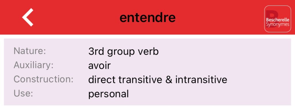 C’est intransitif seulement, alors j’abandonne cette pensée. Mais ça se termine par -er, et entendre par -dre, alors je crois que les groupes n’ont rien à voir avec la terminaison. Un autre exemple de plus ?