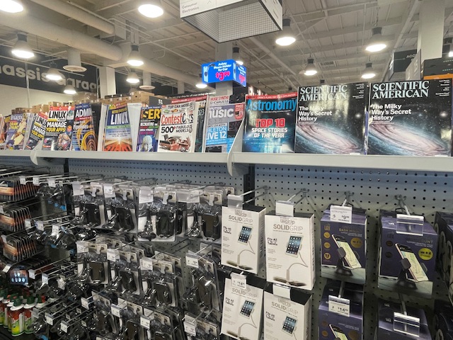 Mettons la scène : J’ai dû aller dans un magasin spécialisé en ordinateurs pour acheter quelques câbles USB pour mes parents, Micro Center. Il est souvent le cas ici que de tels magasins vendent beaucoup d’autres trucs, en général ce que l’on appelle des « impulse purchases », achats d’impulsion — des magazines, des bonbons, etc. — toujours aux côtés des caisses.