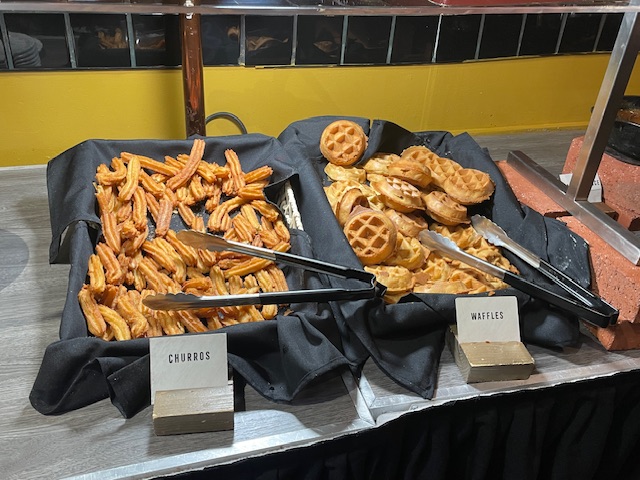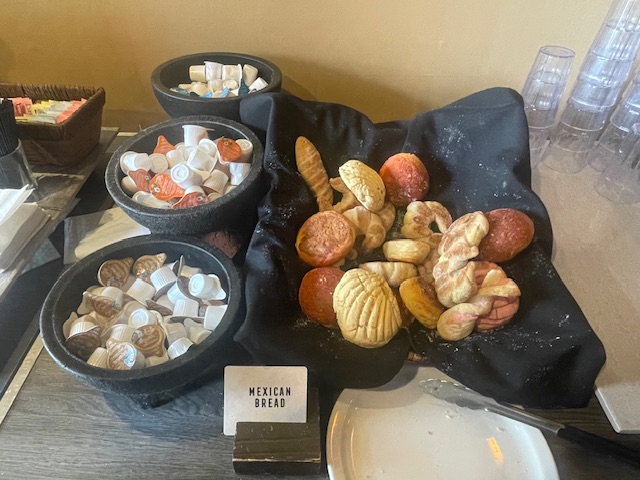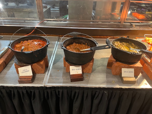 Pour le Réveillon, nous sommes allés dans un resto mexicain, El Torito Grill, pour le brunch. Peut-être que je vous ferai le chile colorado pour le 5 mai cette année. C’est très similaire à la birria, mais aussi l’un de mes plats préférés. Remarquez les huevos rancheros, des œufs au plat à la sauce tomate épicée. Sur la table de desserts, vous trouverez « arroz con leche », ou comme on dit, riz au lait.