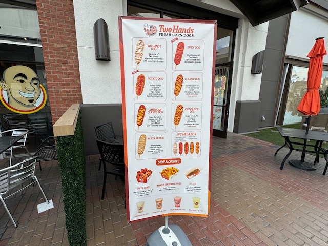 Et juste pour vous donner une dernière chance à vous détourner, voici un nouveau resto rapide dans le même centre commercial, qui vend des « corn dogs » (les québécois disent « saucissons à bâtonnet »), à la coréenne. Sans tout le kimchi, c’est grosso modo le plat préféré de La Fille. Je me demande si elle voudra le goûter :