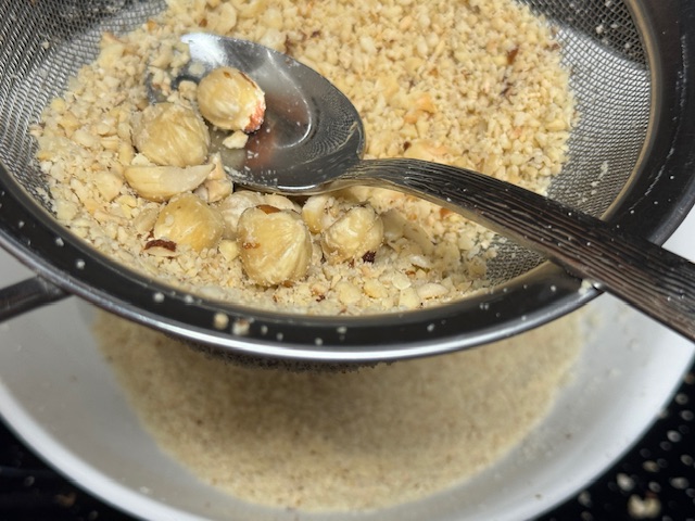 - 60 grammes de poudre de noisettes ; à défaut, 80 grammes de noisettes décortiquées