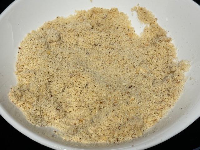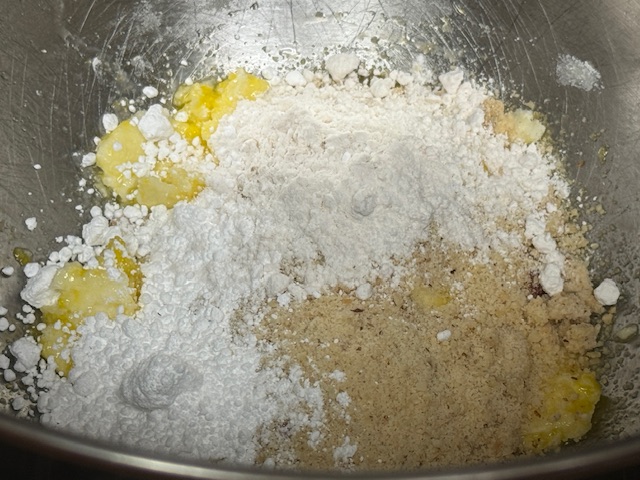 - Ajouter l’œuf et incorporer complètement. Répéter avec la poudre de noisettes et la farine. À cette étape, j’ai ajouté 25 grammes de farine car j’ai trouvé la pâte trop collante. C’est une question de jugement.