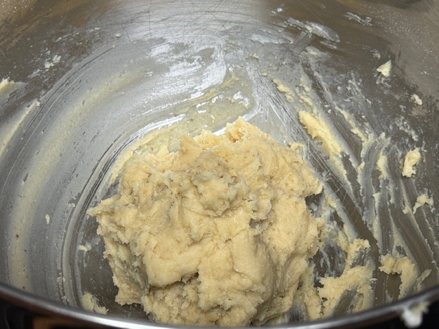 - Ajouter l’œuf et incorporer complètement. Répéter avec la poudre de noisettes et la farine. À cette étape, j’ai ajouté 25 grammes de farine car j’ai trouvé la pâte trop collante. C’est une question de jugement.