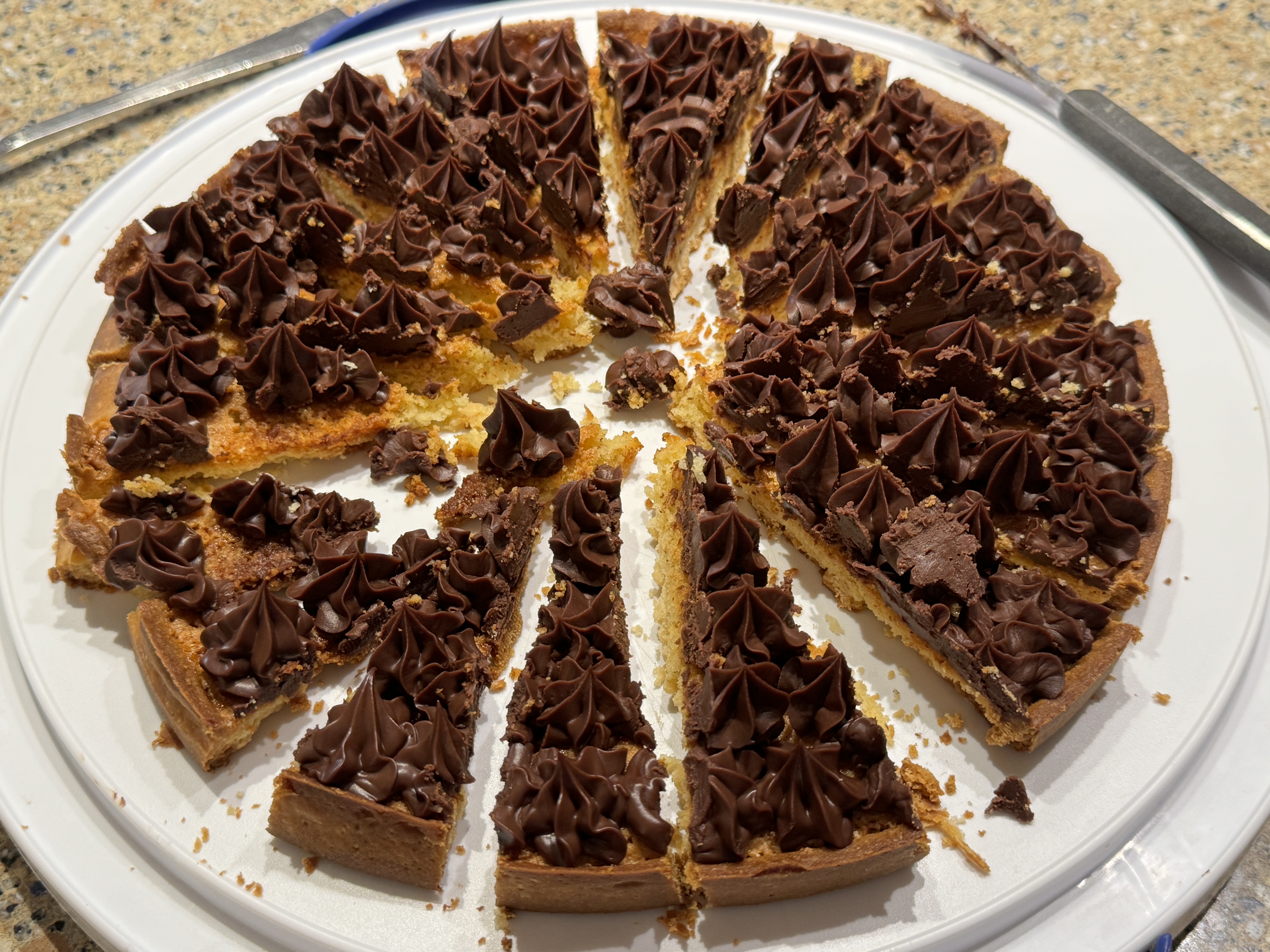 Vu les petites tailles des tranches de la tarte dans la dernière photo, personne n’a consommé 100 grammes de sucre à cause de moi ! 😂
