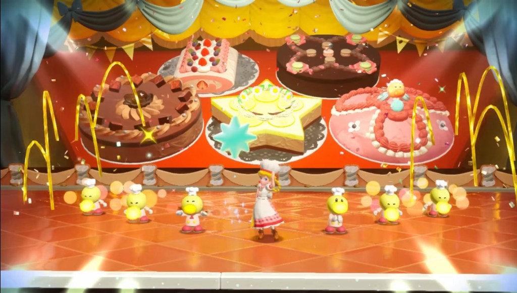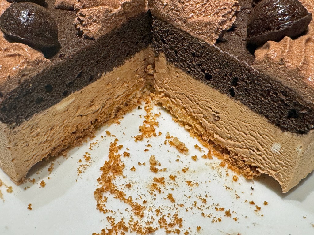 À chaque fois où un jeu vidéo sort avec de la pâtisserie, La Fille me demande à essayer de copier tel ou tel gâteau. Et dès que nous avons entendu parler que la princesse Peach serait pâtissière dans son nouveau jeu… c’était juste une question de quel gâteau. Après plus d’efforts que j’aimerais m’en souvenir, voici l’entremets mousse au chocolat de Princess Peach Showtime :