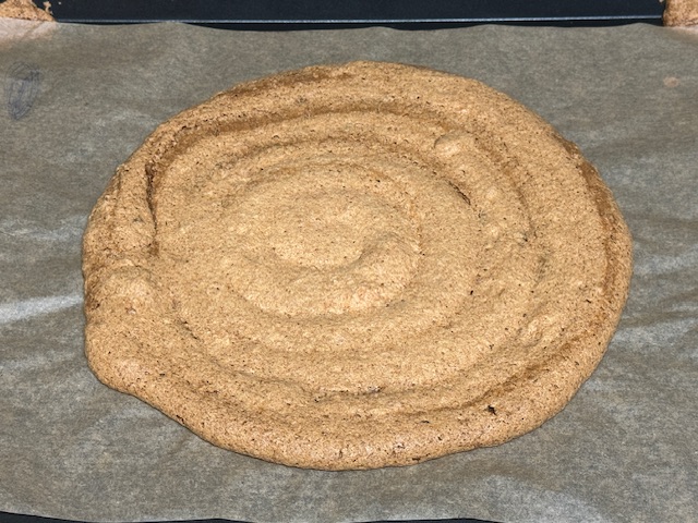 1. Enfourner pendant 1 heure. Je voulais que la dacquoise ne se voie pas car il ne m’était pas clair s’il y avait un tel fond au fond du gâteau du jeu, alors je l’ai coupée pour être plus petite.