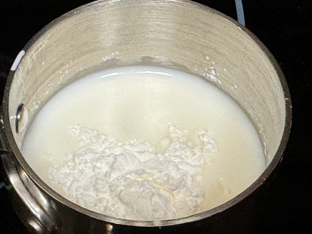 1. Dissoudre la maïzena dans 30 grammes de lait.