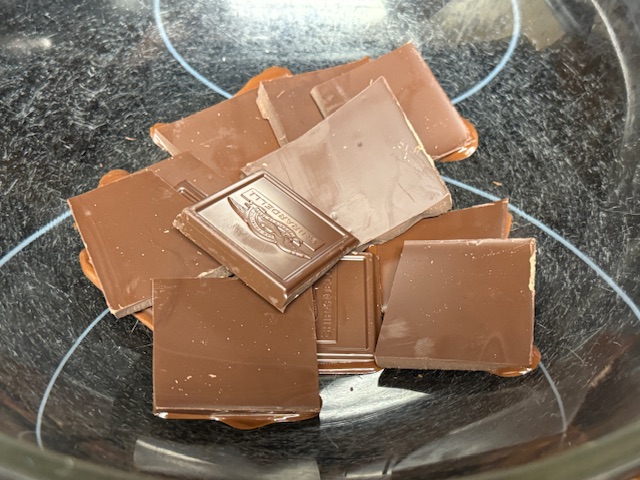 1. Dans un saladier, faire chauffer le chocolat au micro-ondes mais ne le faites pas fondre complètement.