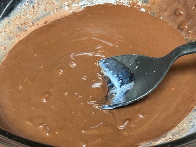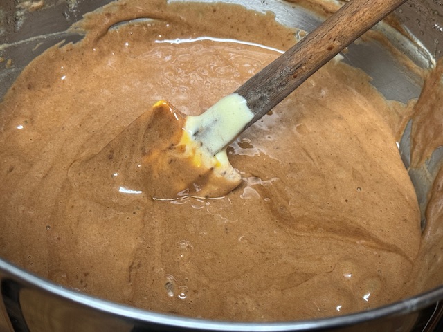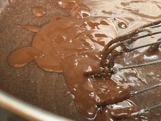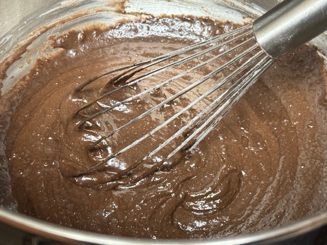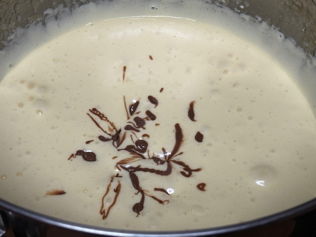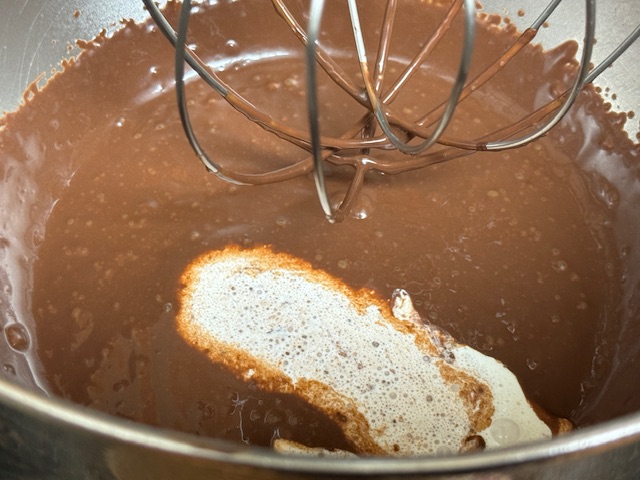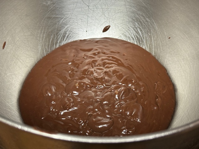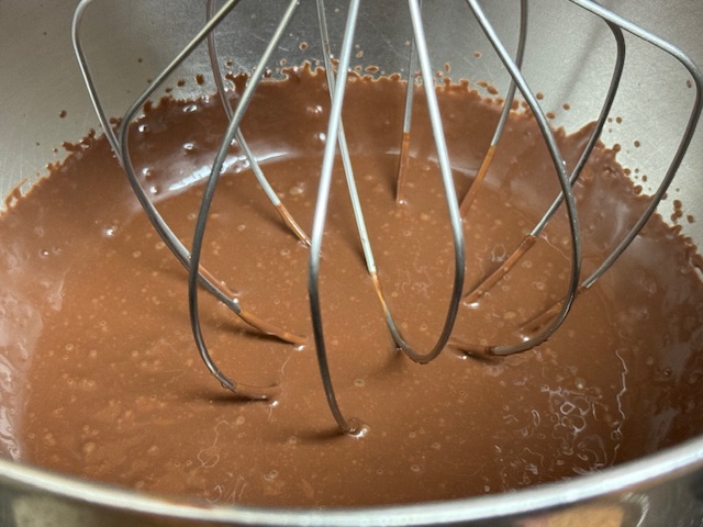 1. Faire fondre le chocolat au micro-ondes. Verser dans la pâte et fouetter une dernière fois.