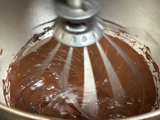 1. Une fois prêt à l’utiliser, foisonner légèrement dans le robot avec de la mettre dans des poches à douille. Trop battu et la ganache commencera à fondre un peu. Si ça arrive, mettre dans vos poches puis laisser reposer au frigo. Mais cette ganache n’aura jamais la texture d’une chantilly ferme ou crème au beurre, alors n’attendez pas à un miracle.