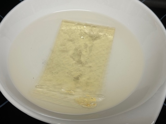 1. Faire tremper la gélatine dans un grand volume d’eau très froide.